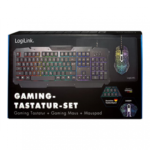 Logilink Gaming-Set, keyboard, mouse and mouspad ID0185 Keyboard, Mouse and Pad Set Wired Mouse included DE Numeric keypad