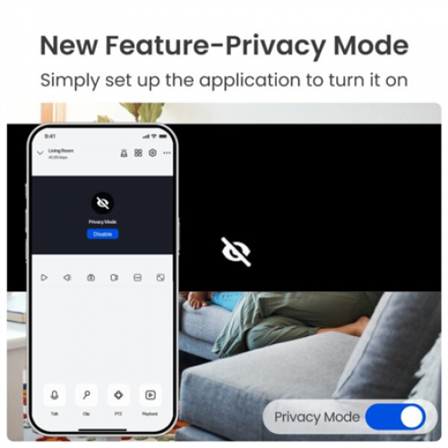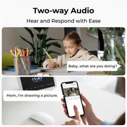 | Tehnilised omadused | Night Vision: Infrared (12m, 8 LEDs) Pan/Tilt: 355 Pan, 50 Tilt, up to 15 preset positions, auto-tracking AI Detection: Motion/Human/Pet/Crying Smart Home: Alexa, Google Assistant |