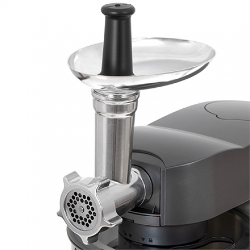 | Funktsioonid | 4 functions: Kneading heavy dough (bread dough, yeast dough, etc.) Mixing light mixtures (mayonnaise, pancake batter, sponge cake, etc.) Whipping (egg whites, cake creams, whipped cream, etc.) Meat mincer up to 1,5 kg meat/minute with 3 sieves: 3, 5, 7 mm |