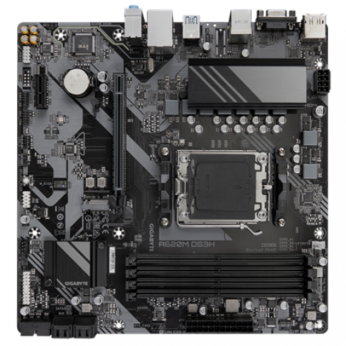 Gigabyte A620M DS3H | Processor family AMD | Processor socket AM5 | DDR5 | Supported hard disk drive interfaces M.2, SATA | Number of SATA connectors 4
