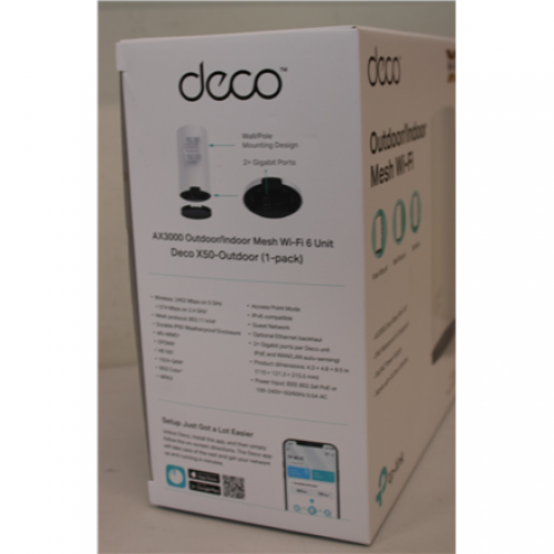 SALE OUT. TP-LINK Deco X50-Outdoor AX3000 Outdoor Whole Home Mesh WiFi 6 Unit | SALE OUT. TP-LINK AX3000 Outdoor Whole Home Mesh WiFi 6 Unit | Deco X50-Outdoor | 802.11ax | 10/100/1000 Mbit/s | Ethernet LAN (RJ-45) ports 2 | Mesh Support Yes | MU-MiMO Yes | No mobile broadband | 24 month(s) | DAMAGED PACKAGING